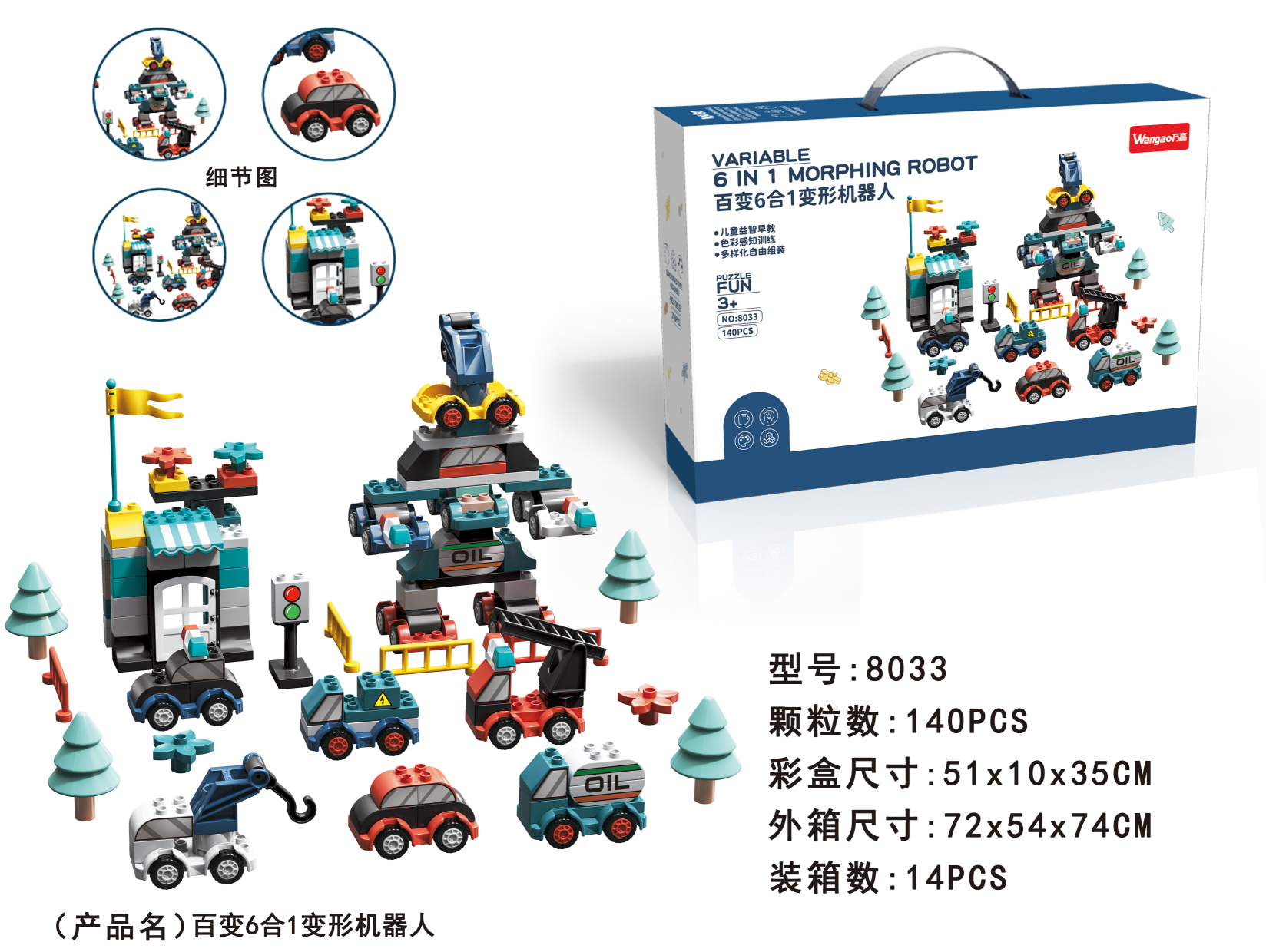 品 名:140大顆粒百變汽車(chē)機(jī)器人