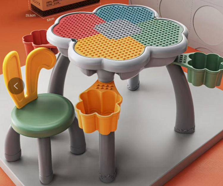 花瓣積木桌+兔椅+四收納盒