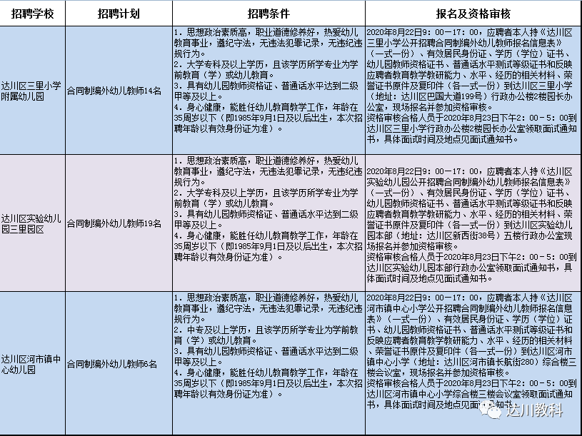 招聘信息綜合自達(dá)川區(qū)三里小學(xué)、達(dá)川區(qū)實(shí)驗(yàn)幼兒園、河市鎮(zhèn)中心小學(xué)